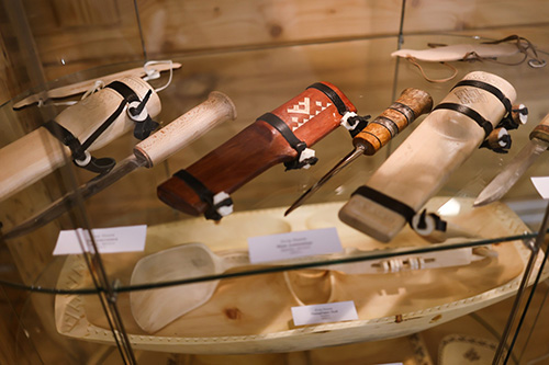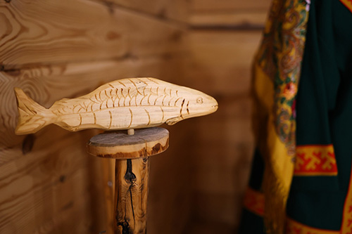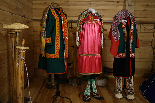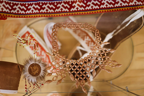 «Традиции — источник творчества» — так они назвали свою экспозицию. Супруги представили более 100 изделий, выполненных в традиционных техниках народа ханты. Здесь не только одежда, обувь и аксессуары, но и игрушки, посуда, лыжи и многое другое.